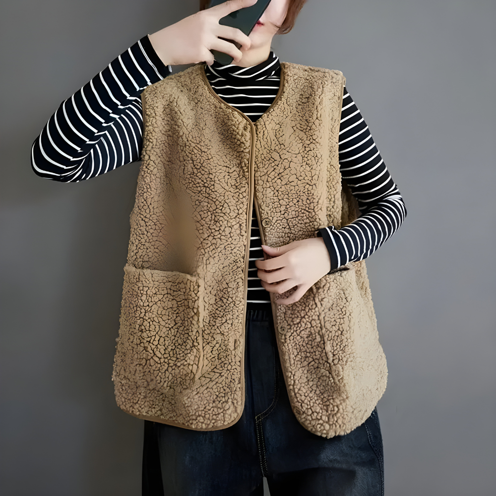 Őrizd meg a meleget nehéz érzés nélkül, és élvezd a réteges öltözködés szabad stílusát, amely reggeli bevásárláshoz és esti sétákhoz egyaránt megfelel. Ez a ujjatlan polár mellény kellemes kényelmet nyújt, miközben szabadon hagyja a vállakat, így tökéletes a változó időjáráshoz. Egy praktikus alapdarab, amely mégis puha, divatos és átgondolt kialakítású.